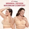 This bra is designed to give you a sleek look from every angle. It features wide, smooth side wings and back that help eliminate bulges.